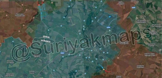 On the Kursk front, over the past 3 days Ukraine has launched multiple mechanised counterattacks on the northern side of the front, notably by part of the 47th Mechanised Brigade (Bradleys and Abrams). These attacks were focused on the village of Zelenyi Shlyakh (red dot next to red and blue arrows), with lots of footage being release by both Russia and Ukraine (Video 1, Video 2, Video 3, Video 4, Video 5). For now Ukraine looks to have been unsuccessful in its attacks so far, but has recaptured some of the greyzone south of Zelenyi Shlyakh. Further counterattacks by Ukraine are expected, as failing to hold or drive back Russia here means potentially losing the entire northern side of the front.