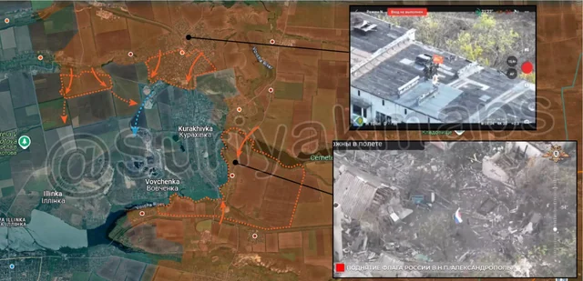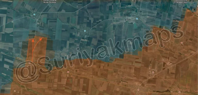 At the same time as this, to the east, Russia assault groups also advanced quickly towards Bohoyavlenka, capturing multiple fields, and a large trench network on the southern outskirts of the town. Similar to the above, clashes are currently occurring as Ukrainian troops suddenly find the front several km closer in the span of a day, and have been caught off guard. Initial reports of the assaults suggest rapid Russian progress in the town, although as of this update this information has not been confirmed yet.