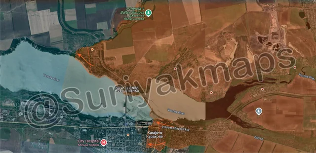 To the south, Russian troops also captured a sizeable area of fields across a 15km wide part of the front, as well as several Ukrainian trenches and positions. This mechanised attack also puts Russian within 2km of the Velyka Novosilka, with only a couple of small dugouts and one big trench network left on the eastern side. Although the Kashlahach River sits between them and the bulk of the town, Russian troops can still capture the outermost buildings of Velyka Novosilka from this side, as well as cutting off the main supply road of the town (if successful in assaults). Most of the town’s defences were built in an arc from southwest to southeast, as Ukraine did not anticipate Russia being able to attack the area from the east or north.