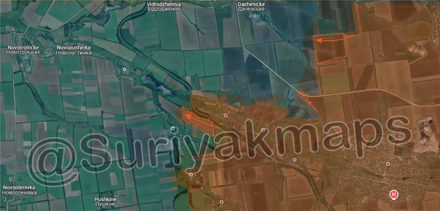 Following on from Picture 4, on the Velyka Novosilka front, Russian forces launched multiple mechanised attacks across a wide area, as they close in on Velyka Novosilka itself. To the north, Russian troops captured multiple fields and reached the outskirts of Rozdolne, with initial reports suggesting assaults on the village are already underway.