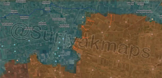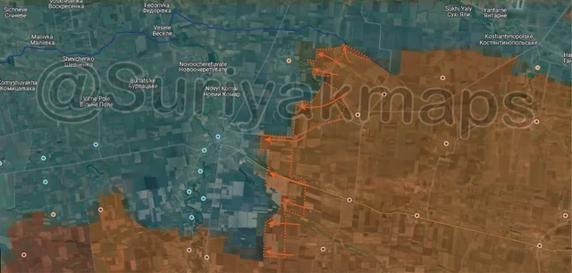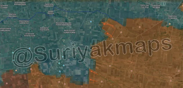 Ukraine’s 128th Mountain Assault Brigade, part of the 118th Territorial Defence Brigade, and the Mechanized Battalion of the Presidential Brigade are holding this part of the front. With the frontline in this area having expanded (in length) due to Russian advances over the past month, these units are struggling to defend the larger area, particularly due to the lack of pre-built defences. With Ukraine not having any units in reserve (as all its available units are deployed to one front or another), they are in serious trouble and unlikely to be able to stop the Russian advances on this part of the front, although not from a lack of trying. Ukraine will have to rapidly redeploy another unit from another front to try reinforce, however even if they do so it will likely take too long to prevent Russia cutting the northwestern road of Velyka Novosilka, and before they begin to assault the town.