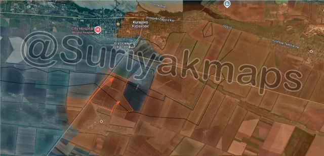 Russia also crossed the main road to the south, and has begun moving through the fields west of Dalnje.
