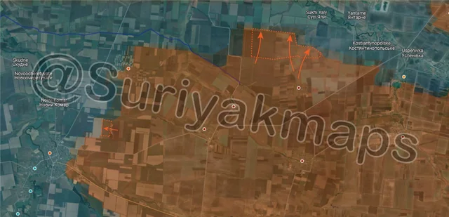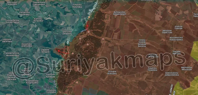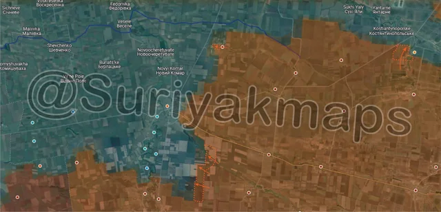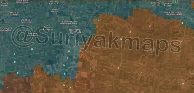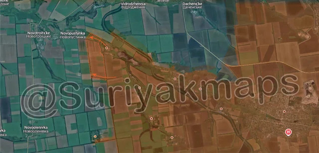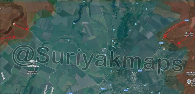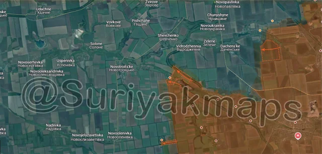 On the east side, similar to the above, some Russian infantry groups have cleared the treelines around the stream through Kruglik, as well as along the R200 road, undoing Ukrainian progress there from last week, as they position themselves for an assault on Martynovka (above the p).