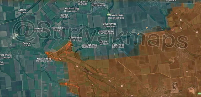 Ukraine supplies and reinforces its troops on the east side of the river via pontoon bridges, which are now under threat with this advance. Ukraine’s control of Plekhovo will not last if they cannot restore control of their flanks.