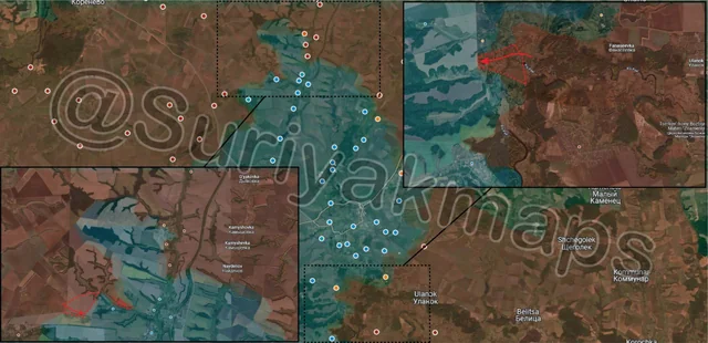 To address a common topic I’ve gotten a few messages about: what happened in Makarivka (bottom red dot)? I talked about this a bit in the previous update, but Makarivka was captured by Russia on Day 1028. The Ukrainian claims about some troops being encircled in the village are not only days late, but incorrect. For a basic idea of the problem, have a look at what the village looks like now (older footage). Makarivka simply does not have any structures left standing, only rubble. Ukraine was holding this area via some of the trenches and dugouts directly north and northwest of the village, not within the village itself, as there simply is no where to hold within the village. This is also why Russia was driven out of southern Makarivka a few weeks ago, and had to go around via the west side. For Ukraine to be encircled in the village, they would somehow have had to lose their positions in the trenches and dugouts north and northwest of the village, retreated into Makarivka instead of to the north, then somehow find positions to bunker down in that weren’t there before. Its simply not feasible, and Russian drones showing the village empty, and their troops continuing to advance northwards, confirms the encirclement claim isn’t true.