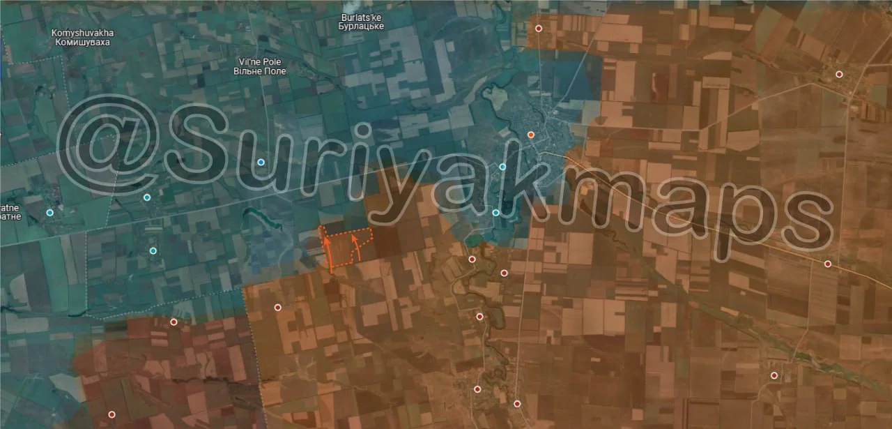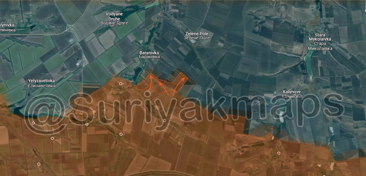 The northern fields may not have many defences, but they sit in a bit of a low ground compared to Ukrainian positions along the Bychok River (runs through Baranivka). The treelines in these fields also have very few gaps between them, so making the use of vehicles a bit difficult.