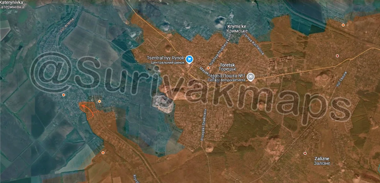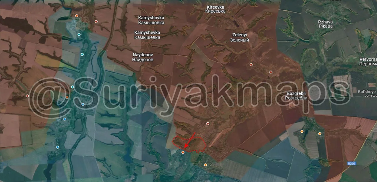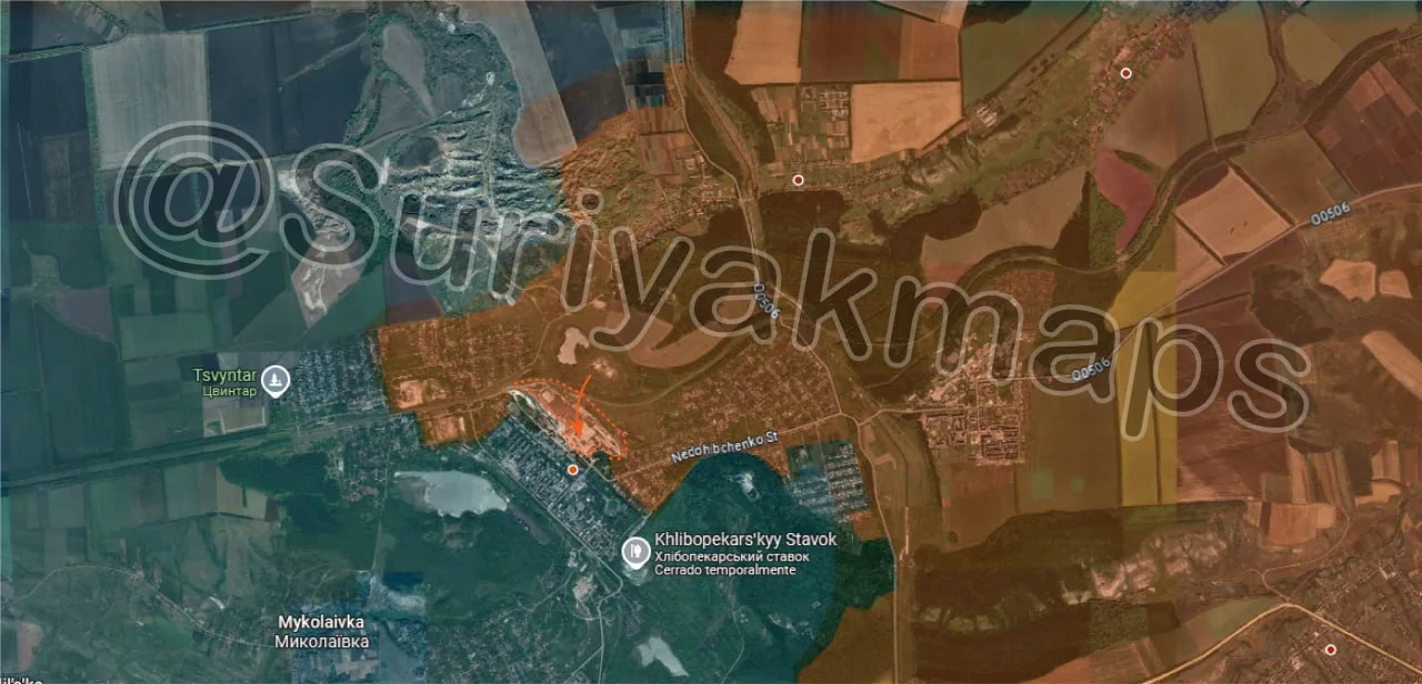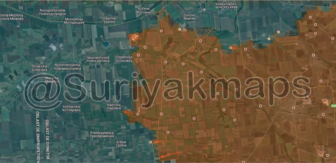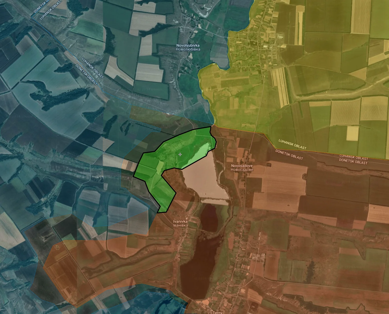 To the southwest, after a few week pause, Russia began to push out from Novojelyzavetivka (below the i), advancing west up the road and occupying the 5 houses that sit between Novojelyzavetivka and Nadiivka. The assault on the latter should begin within the next day or so.