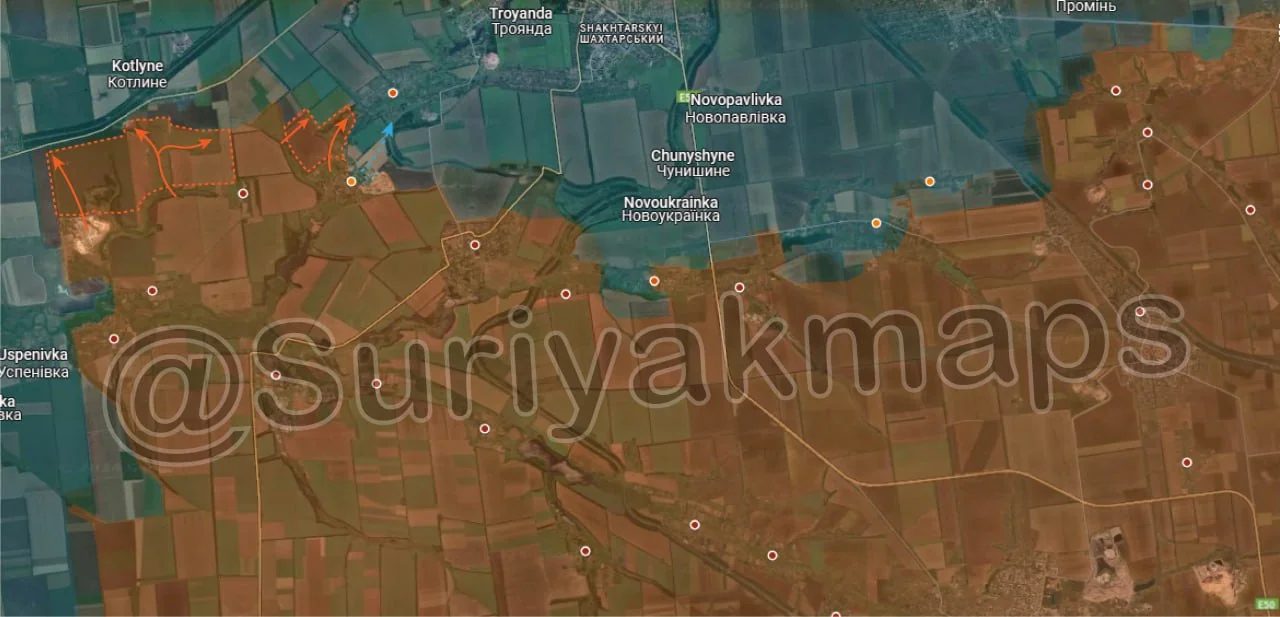 Heading southwest, after a few days of clashes on the outskrits, Russian troops entered Yasenove, taking up positions in the eastern houses. They also cleared out a number of fields southeast of the village via the treelines. Ukraine has the benefit here of having 7 villages in close proximity to each other, meaning they can pull back to preprepared positions in the next one (in this case Novoandriivka) if they lose battle for one of the villages (in this case Yasenove).