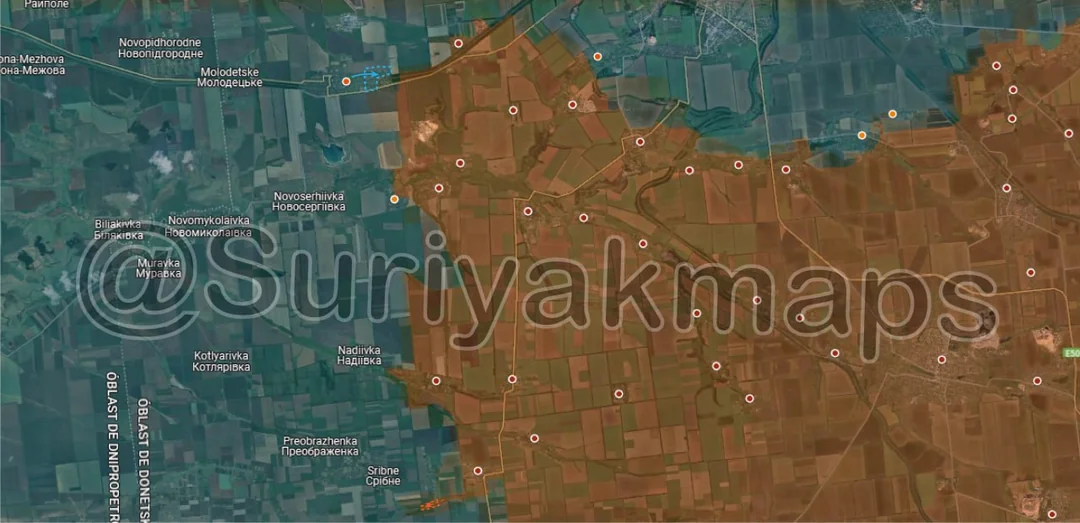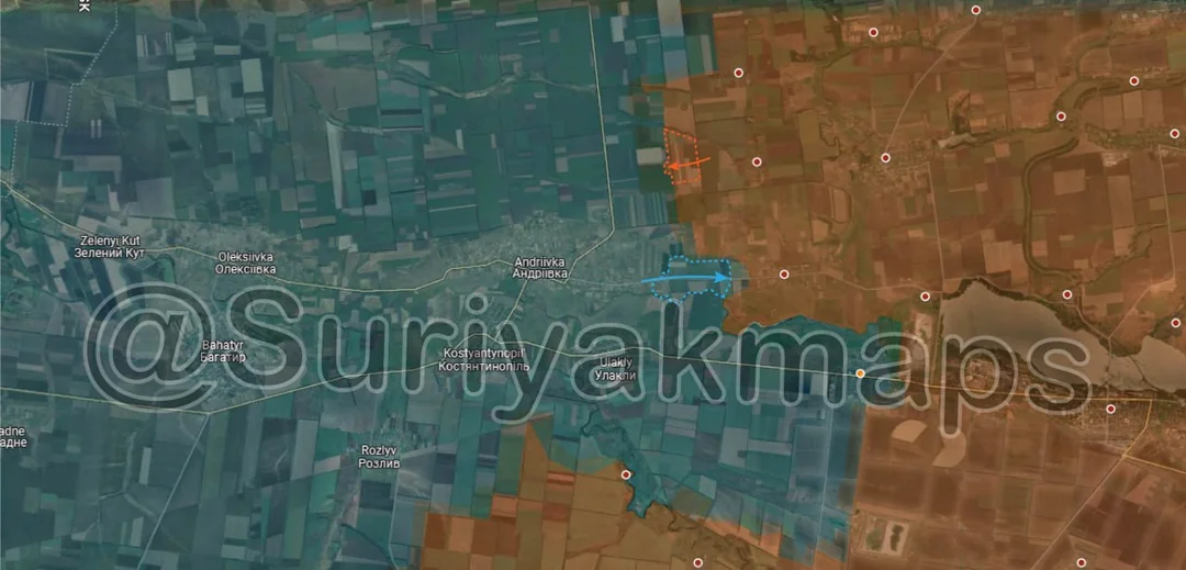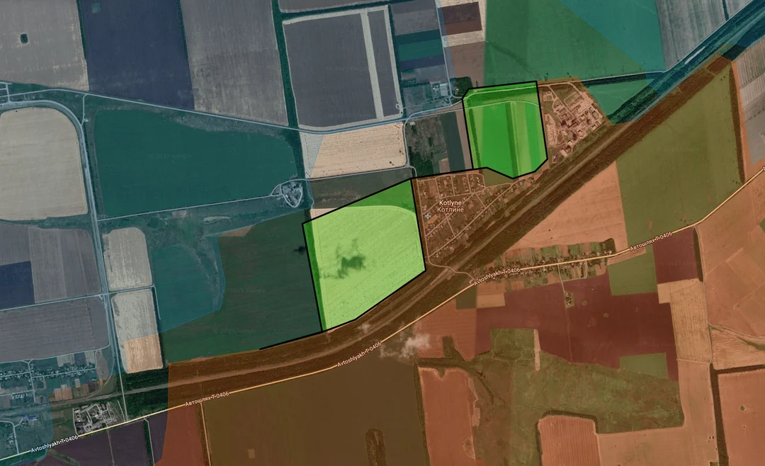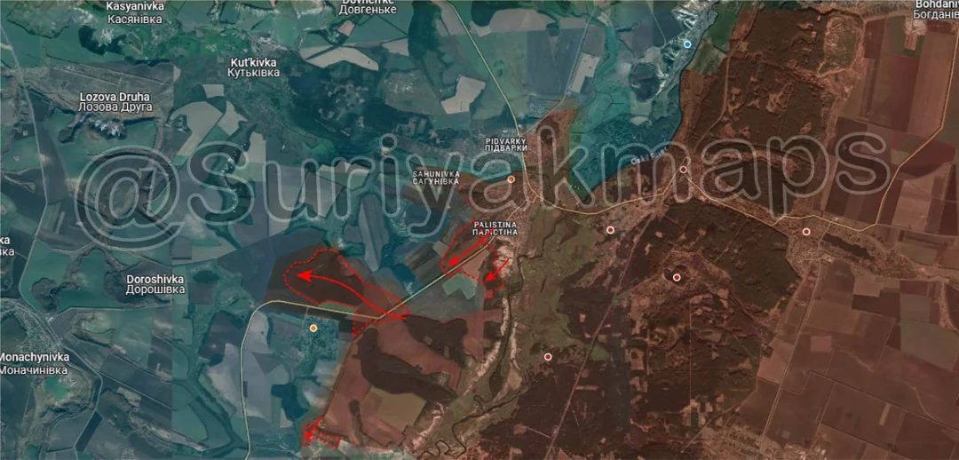 Slightly south of Zapadne, Russia slightly expanded their control of the treelines along the hill south of Zapadne, having set up there and in the farm to defend the southern flank of the Russian bridgehead (ground slopes down sharply in this area, as there is a stream running into the Oskil here).