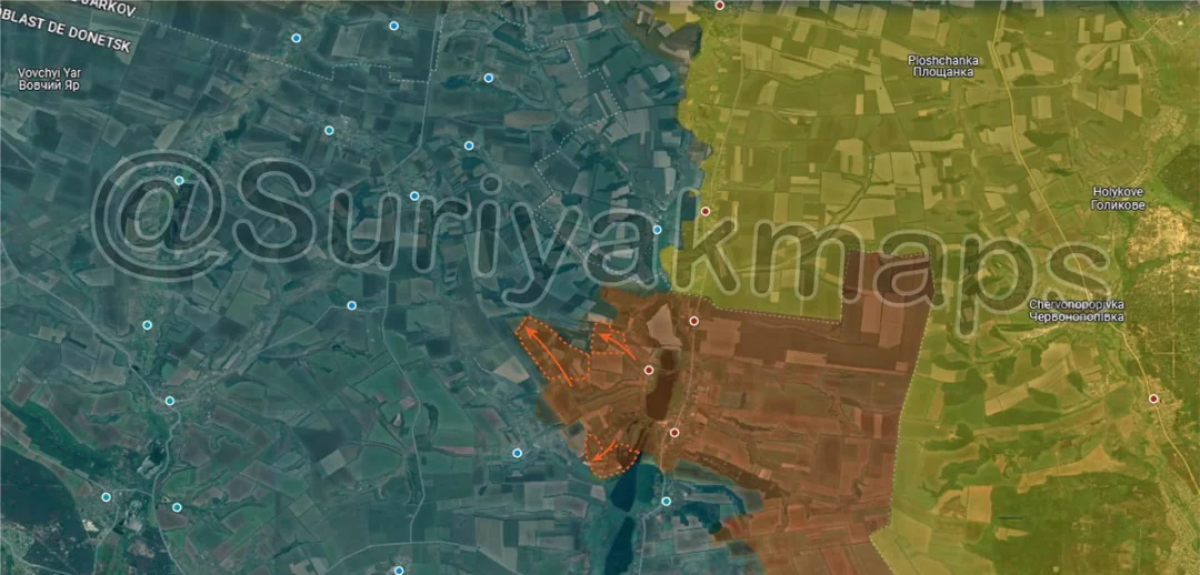 Heading over to the Kupyansk front, in Dvorichna, Russia infantry continue to expand their control around the town, occupying the small forest areas on either side of the southern road. Additionally, some Russian troops have crossed into the forest north of Zapadne, occupying it as they flank the village. A couple of Russian sources claim Russia already controls Zapadne, but most others (as well as Suriyak) say that fighting is ongoing in the vicinity of the settlement. It’ll likely fall within the next few days as the few Ukrainian defenders are driven out.