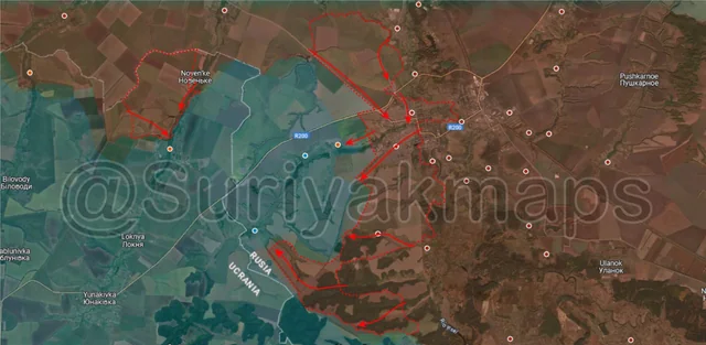 Following on from picture 5, Russian troops finished clearing Rubanshchina, and are now moving onto Gogolevka. Same as with the other areas, Ukraine had already abandoned the village so not much of note occurred during the cleanup.
