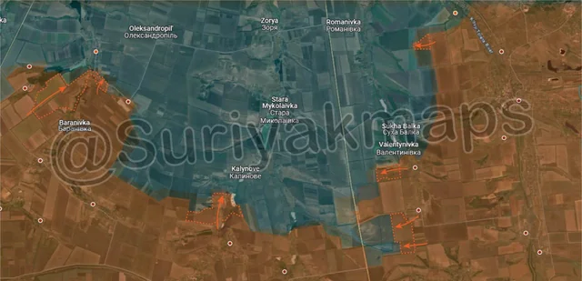 Moving west, Russia launched a new attack from Arkhanhelske towards Kalynove, with their assault groups taking over several fields and a large Ukrainian trench network on the first day. From reports these troops have immediately continued pushing north into Kalynove where clashes are occurring. Ukraine looks to have been caught off-guard here and there forces are quickly losing ground.