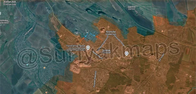 Moving southwest to the southern edge of the Toretsk front and the Ocheretyne front, Russia has continued to press the attack in a number of area. Going clockwise, a few Russian troops made a minor advance north of Sukha Balka, taking over part of a treeline. This group is likely looking for openings to push west north of the village in an attempt to cut them off.