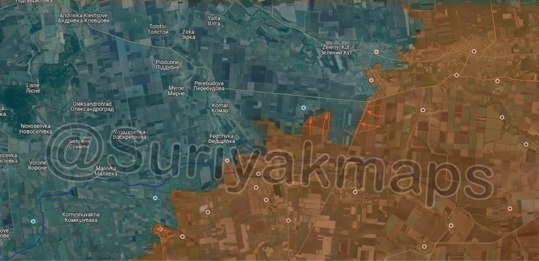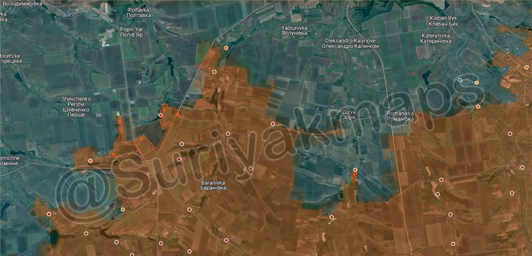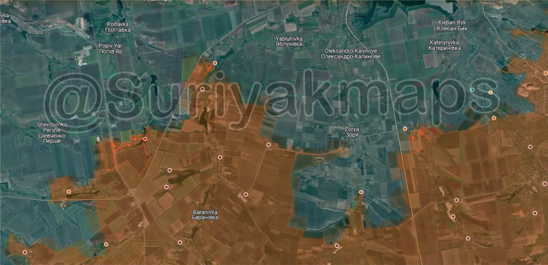 West of Zorya, Russian motorcycle groups have made an aggressive advance from Oleksandropil towards Zorya, with a number of infantry reaching and taking up positions along the treeline just southwest of the small town. They have not actually entered Zorya at this stage, however the pressure is ramping up and Ukrainian positions are becoming increasingly untenable as Russia outflanks or bypasses defences.