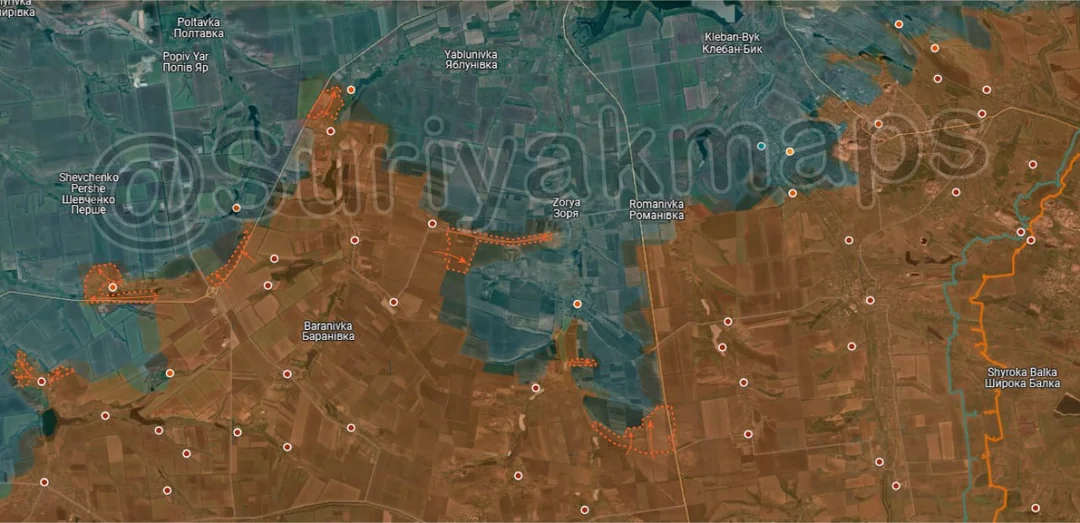 Southwest, Russian forces near the highway interchange have cleared some of the empty treelines south of Nova Poltavka, in preparation for further attacks north (possibly to the west side of Nova Poltavka).