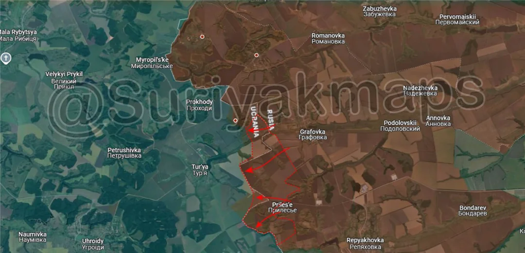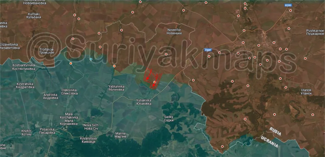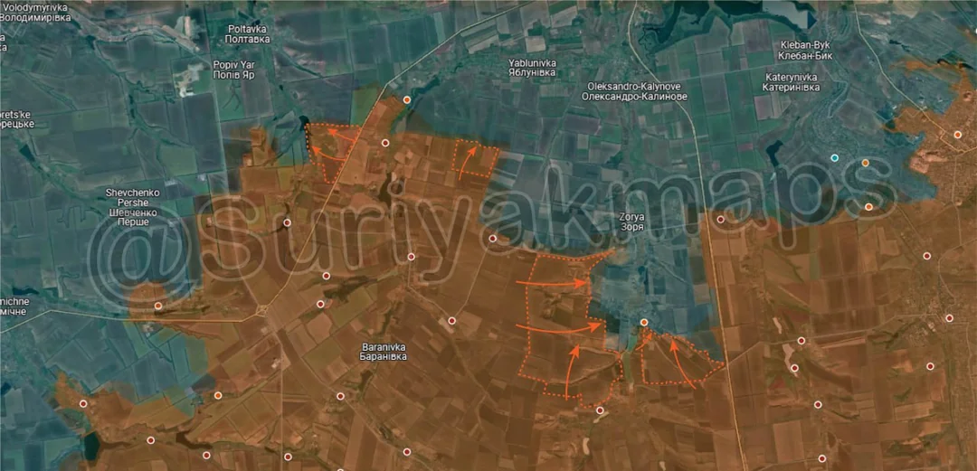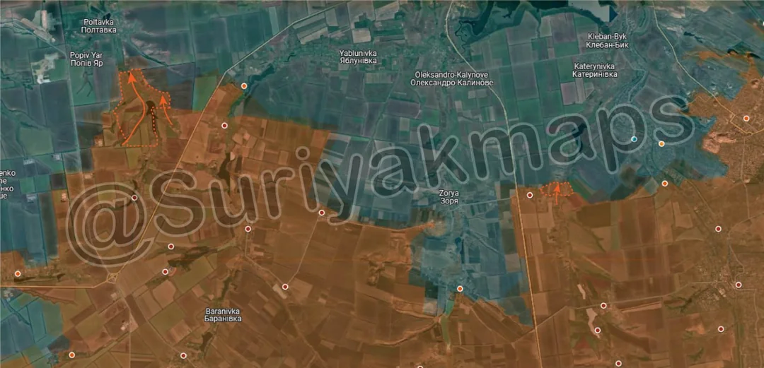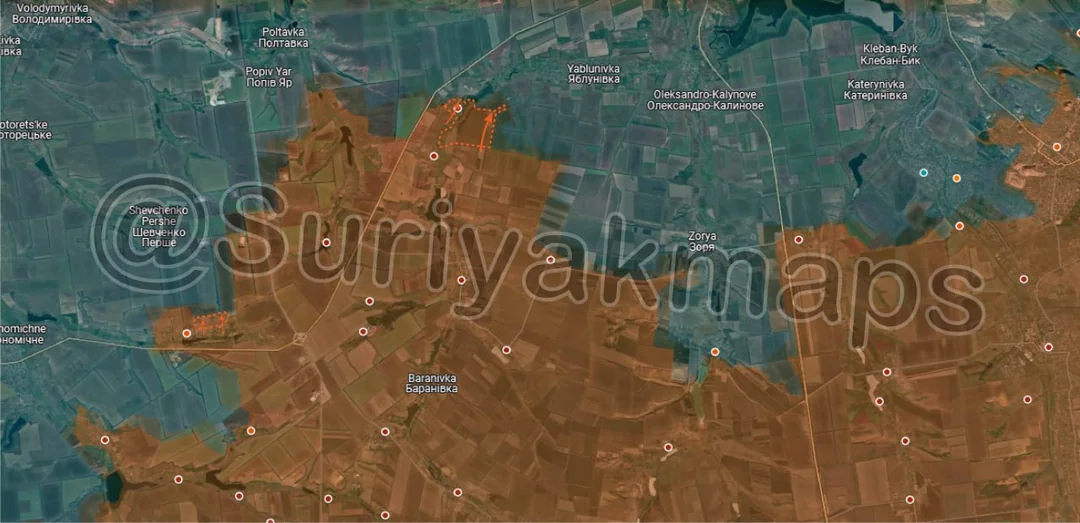 Moving west, Russian infantry north of Oleksandropil made two smaller advance in the treelines north of the village, continuing their advance towards Yablunivka.