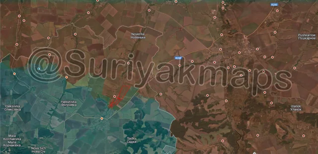 East of that, the Russian assault group that got close to Yablunivka was confirmed to have entered the western houses and has secured a foothold in the town. On the opposite side of the river another Russian assault group has also entered western Yablunivka, meaning Russia is now advances on both sides.