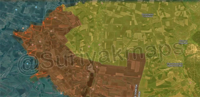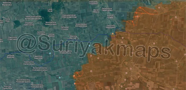 To the northeast, Russian assault groups north of Malynivka have made quick progress, capturing several farms, a number of fields and many treelines. These groups are heading for Shevchenko Pershe, a small village that will likely fall quickly as Ukraine is just not in a position to hold this area.