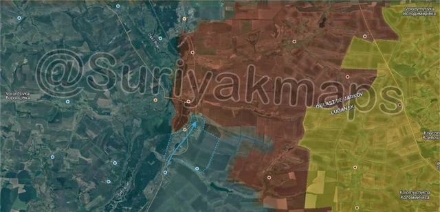 To the southeast, Russian forces continued their low intensity operations around Stroivka and Topoli,, securing a few forest areas. This is mostly unrelated to the other advance, as their operations here have been ongoing for months now.