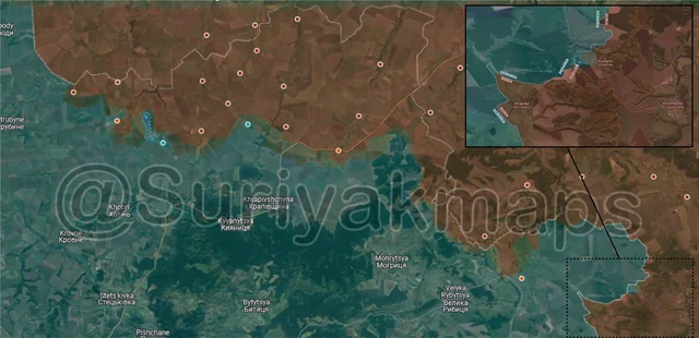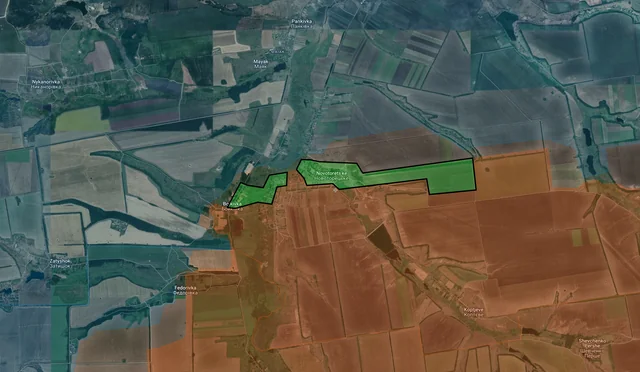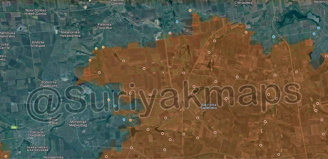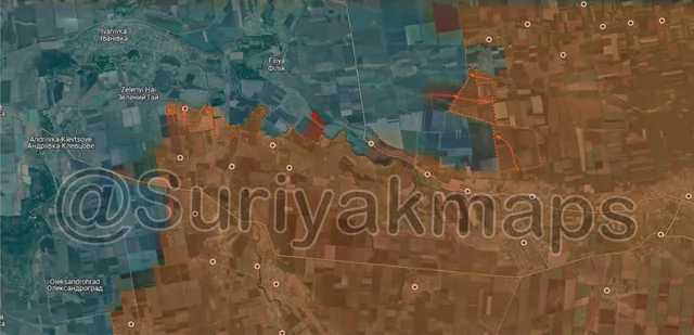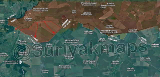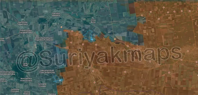 To the southwest, before Russia could secure their positions in Voskresenka, Ukraine counterattacked and drove them to the outskirts of the settlement, reestablishing control of most of the village. Russia is currently trying to push back into Voskresenka, so clashes are ongoing.