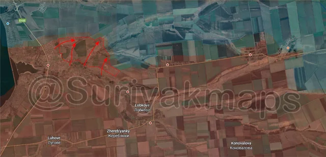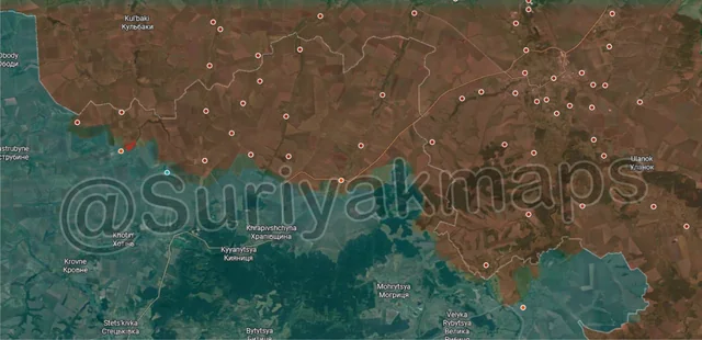 Following on from picture 3, in Poltavka, Russian assault groups have joined up and taken over the houses on the southern side of the settlement. Heavy clashes are ongoing, but early reports suggest that Ukraine is being driven back.