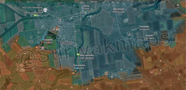 South of this, other Russian groups have continued to expand their control of the area west of the Kazenyi Torets River, clearing and capturing Zatyshok, taking control of several fortifications in the fields, as well as reaching and securing a portion of the railway line. This cuts Ukrainian movement between Dorozhnje and Rodynske, and puts Russia dangerously close to the main supply road for Pokrovsk and Myrnohrad, which is already being interdicted.