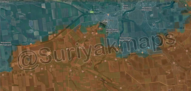 To the southwest, the Russian push west of the railway has expanded, with their troops taking physical control of the area (treelines and fields), as well as some forward DRGs reportedly operating near Shevchenko. Whilst the main road between Dobropillya and Pokrovsk-Myrnohrad has now been cut, it lost its viability a couple of weeks ago when fighting began around Rodyske with it being too close to Russian lines. Still, establishing physical control will ensure no risky moves are made by the Ukrainians and will help them flank Rodynske.