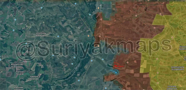 Over the span of a week with mounting Russian pressure on western Kupyansk and renewed attacks to the east starting to take some important defences (I believe by the Russian 1st or 153rd tank regiment), Ukraine was forced to withdraw back into Petropavlivka to concentrate their forces. This allowed the Russians to turn their important, smaller trench captures into a significant advance, taking control over a large area of fields, treelines and trenches on the east side of the pocket. It is unclear whether they were able to move into Petropavlivka at this time, as whilst some sources say they established a foothold, others say they are still just on the outskirts.