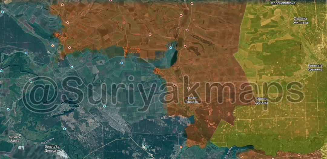 Further south were the more shocking developments from this front, which seemingly came out of nowhere. Russian forces launched another mechanised assault on Volodymyrivka, this time much larger, managing to land a significant number of troops in the village who quickly fanned out and captured the settlement. This also came with the capture of the large area of fields and treelines to the south that Ukraine had been working on for months.