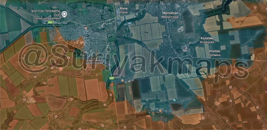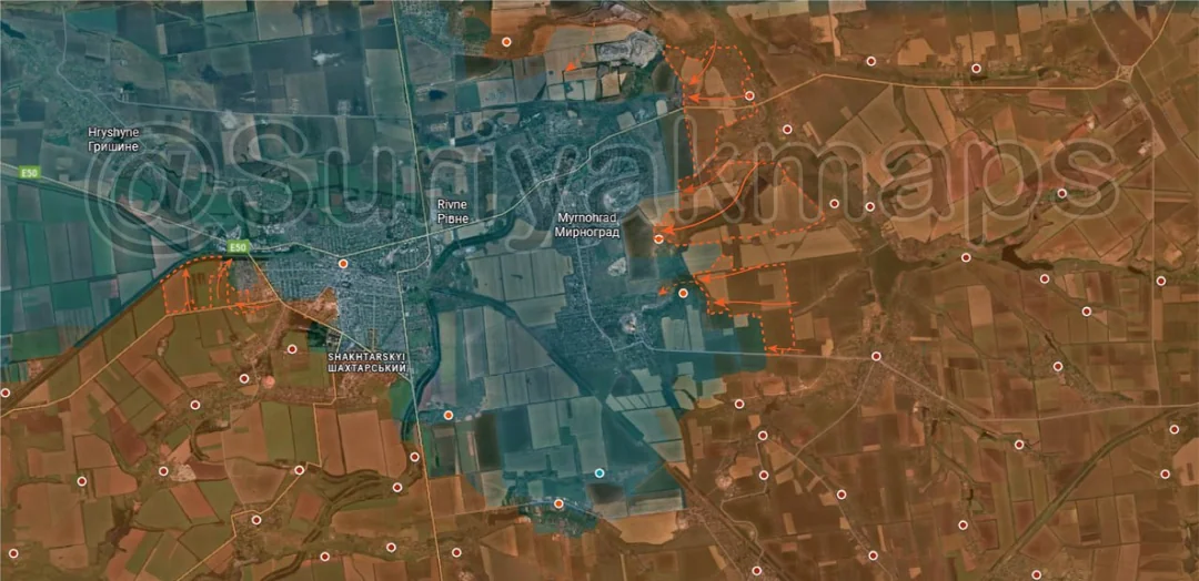 On the west side of Pokrovsk, Russian assault groups cleared Ukraine out from the Durniak, capturing some more streets and also managing to push up the railway right near the industrial area. As mentioned in previous posts, this industrial area sits at the crossroads of both the E50 highway and the O0525 road to Hryshyne, both key logistics routes for the Ukrainians.