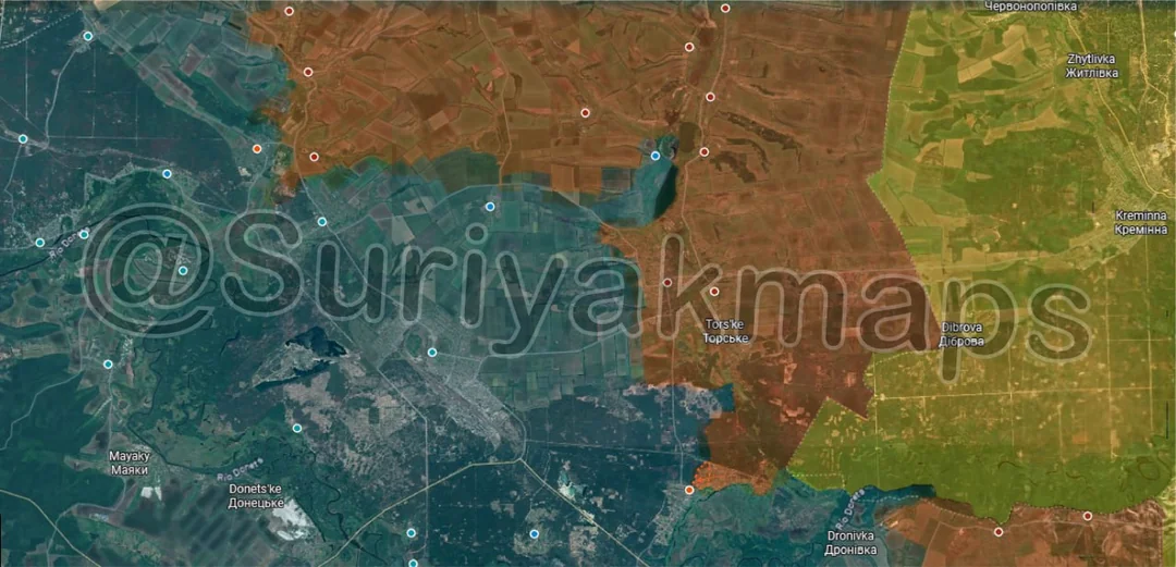 Following on from picture 10, Russian forces made further advances east of Myrnohrad, some that occurred earlier and are only being reported on now. Novoekonomichne (above the m) was recaptured by the Russians some time ago after the Ukrainian counterattacks stalled out and they withdrew back into the city.
