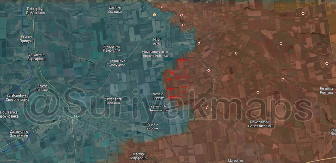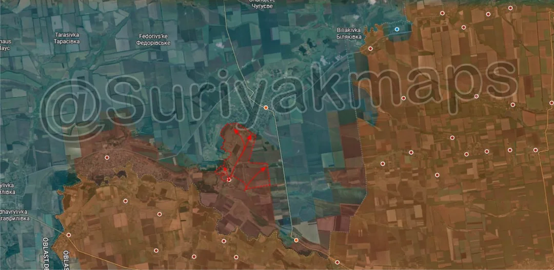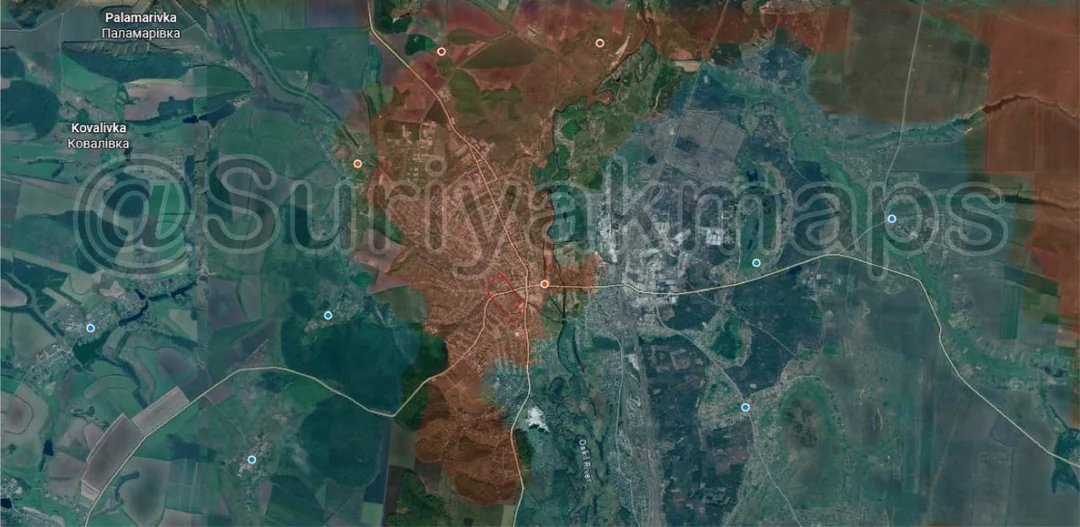 It was at this point in time that northwest of the city, 2 Ukrainian helicopters, flying as low as possible to avoid detection, headed directly towards the city, with 1 landing and dropping off 11 Ukrainian Special forces. This took place right outside the northwestern industrial area, essentially on the frontline at the time, with those soldiers fanning out towards the nearest buildings. The operation went badly however, with those same soldiers being spotted and hit by Russian drones almost immediately, some not even making it 100m from where they were dropped off. The geolocations in the video (which I’ve also checked myself) show the strikes all took place right in that area, with all soldiers being either killed or at least wounded in the fields or nearby buildings.