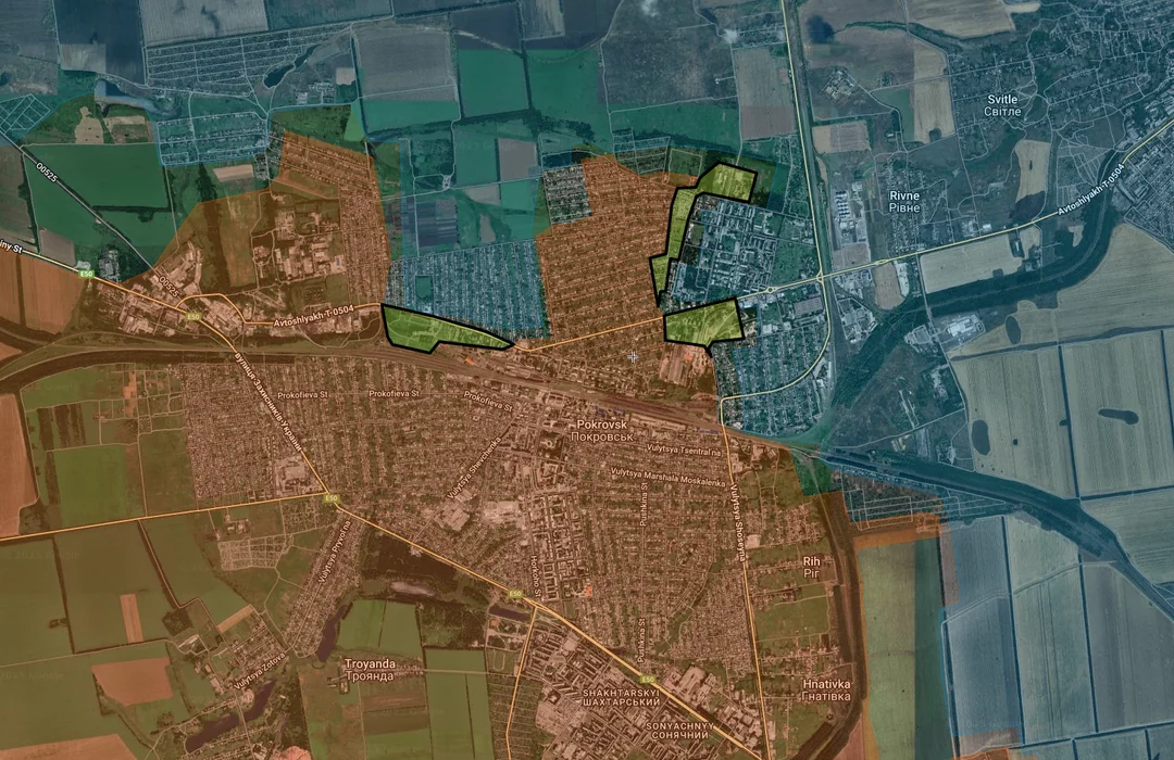 Following on from picture 4, over the past 2 days the Russians have further cleared the last parts of Pokrovsk, taking over a chunk of the remaining northern suburbs, as well as moving into the highrise district on the northeast side of the city (where some Ukrainian soldiers are still stuck.