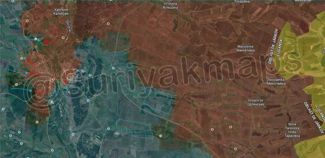 To the northeast, Russian assault groups from the city have been pushing along the northwestern outskirts, taking up positions right outside Hryshyne. No assault on the town has begun yet but the Russians are certainly preparing for one.