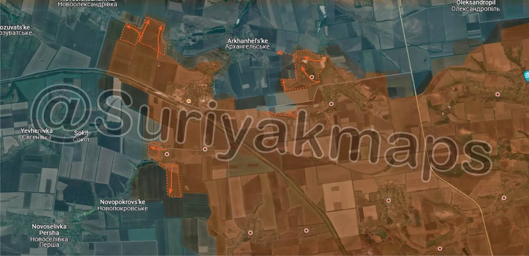 Russian forces continue to press the advantage in the 'Ocheretyne breakout'. They continued their advance to the northwest, capturing more fields and approaching the outskirts of Novooleksandrivka, one of their next targets. Ukraine will likely try hold the village and the treeline along the road going south.