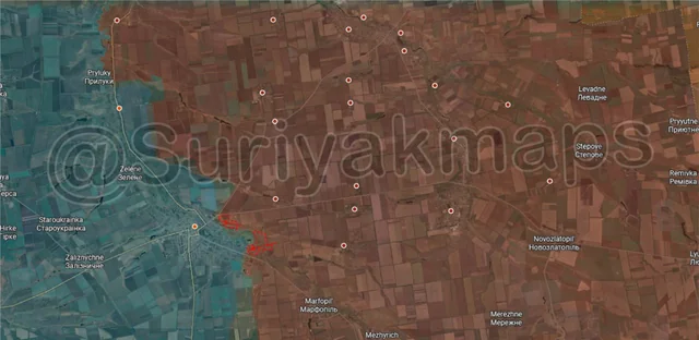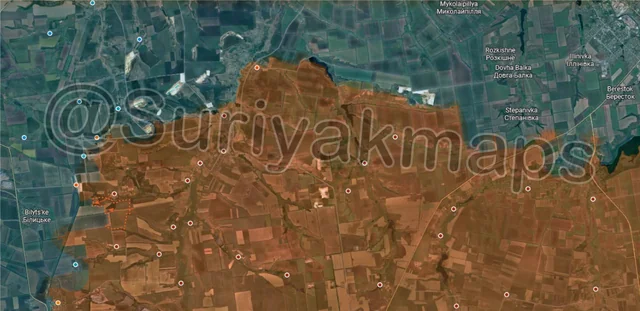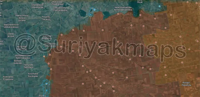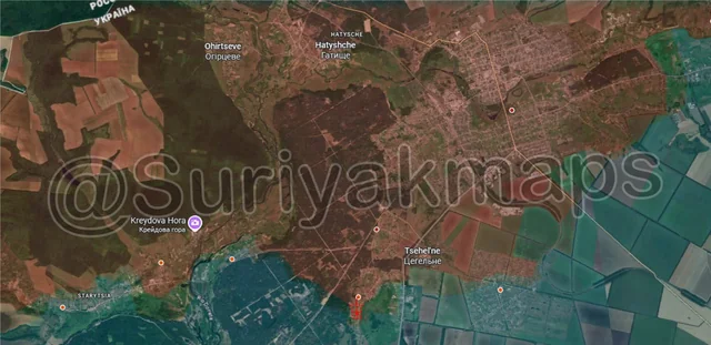 Onto the Pokrovske and Hulyaipole fronts, in the north, with Russia unable to cross the Vovcha River and assault Kolomiitsi, Ukraine counterattacked and recaptured the village of Tykhe. The Russians are still present in the treelines and gulley south of this area, so we will have to see if they regroup and attack Tykhe again or if Ukraine tries to push further south to undo more Russian progress.