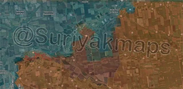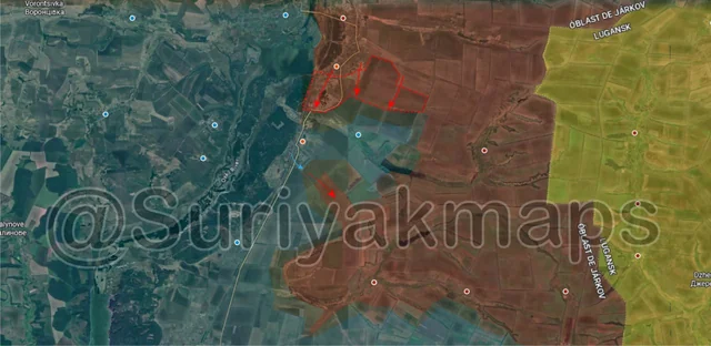 To the southwest, there has been a lot of confusion over the village of Dobropillya. Last post I mentioned that Ukraine claimed they still held the village and released a video of their troops standing next to one of the warehouses where the Russians had also filmed themselves. Based off this Suriyak has marked most of Dobropillya as being under Ukrainian control, however to spoil the next post he has already undone this as Russia released another video yet again showing their troops in Dobropillya and refuting the Ukrainian video. They claim that the Ukrainians sent a couple of soldiers in to film the flag waving video before running away and were able to prove that Russia is still in the village, so it is a complete mess here.