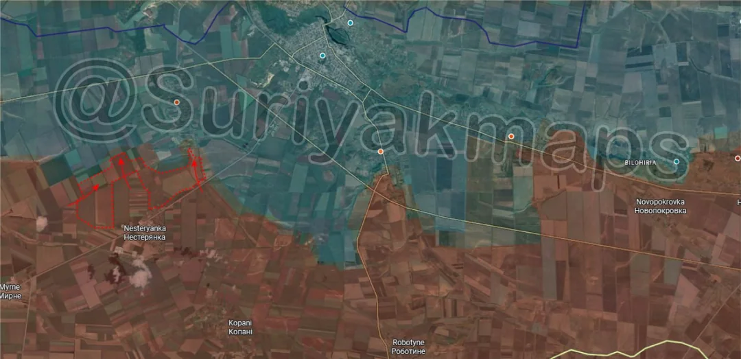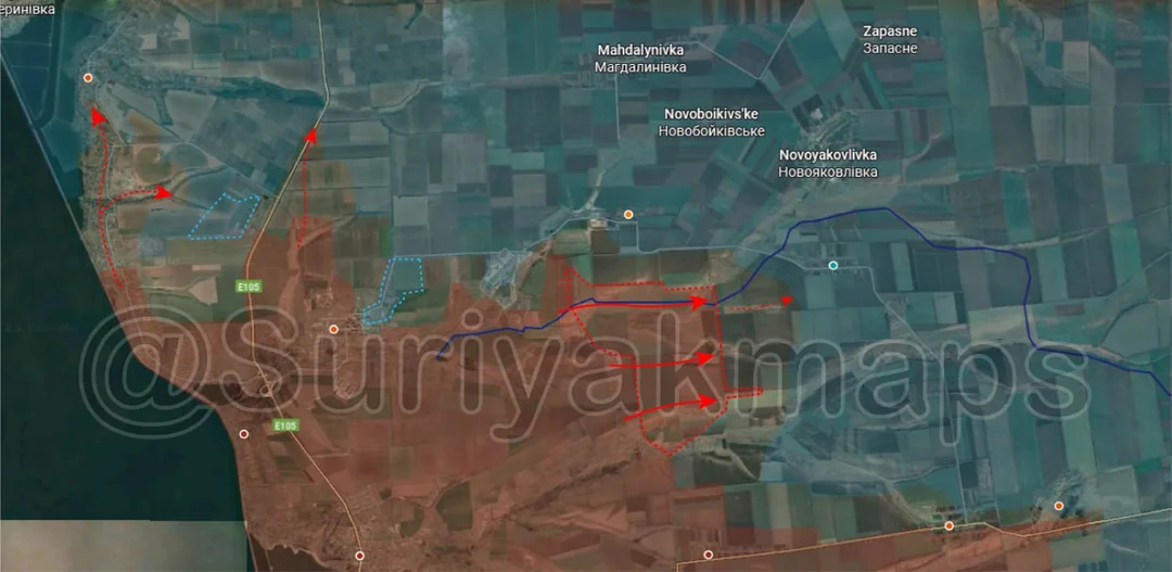 East of that, other Russian DRGs made a minor advance north of Stepnohirsk, capturing part of a treeline, with one of the groups even moving much further up the E105 highway.