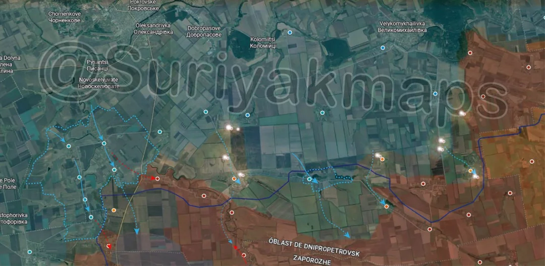 Onto the Pokrovske front, where the Ukrainian ‘counteroffensive’ continues. Starting with the east side, Ukrainian assault groups from numerous directions have continued trying to break deep into Russian lines amidst heavy shelling, with the remainder of Verbove being captured. Other assaults on Kalynivske, Stepove and Ternove have so far failed, but they are continuing to try pour troops into the area. As mentioned in the last post, this area is no longer outer Russian positions but solidly held lines much closer to their drone operators, leading to significant losses in the mechanised attacks (new vids only; video 1, video 2, video 3, video 4, video 5, video 6, video 7, video 8).