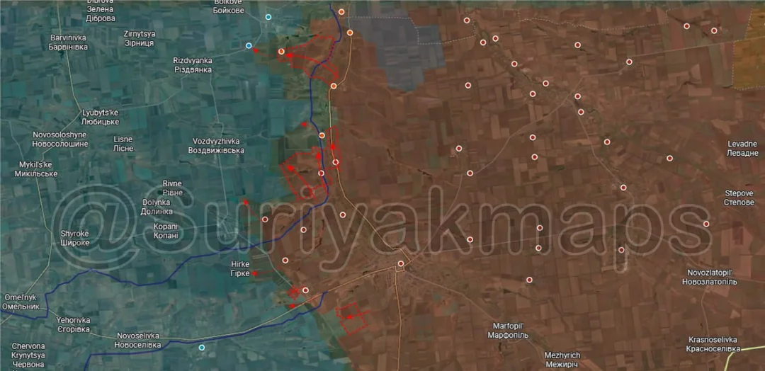 To the west we have a slightly older development which has only been confirmed recently. When Ukraine launched their counteroffensive the Russian assault groups in the outer settlements of Bratske, Andriivka, Harasymivka, Pischane, Zarichne, and Ostapivske were left exposed and at risk of being cut off. As such, their troops were withdrawn in the first week or so of the counteroffensive (so somewhere around 8 to 12 February), with Ukraine reportedly entering these villages later on. This was rumoured and claimed at the time it occurred, however the primary issue was that Ukraine and Ukrainian sources have always denied that they ever lost this area, so their reports for the past 3 months have always listed these settlements as under their control. Thus we saw virtually no change in Ukrainian reporting on this part of the front despite the rumoured Russian withdrawal and it was only later when more footage and Russian reports were released that it could be confirmed. The Russians that withdrew are now trying to hold the riverline around Nechaivka, to prevent Ukraine pushing any further into their lines.
