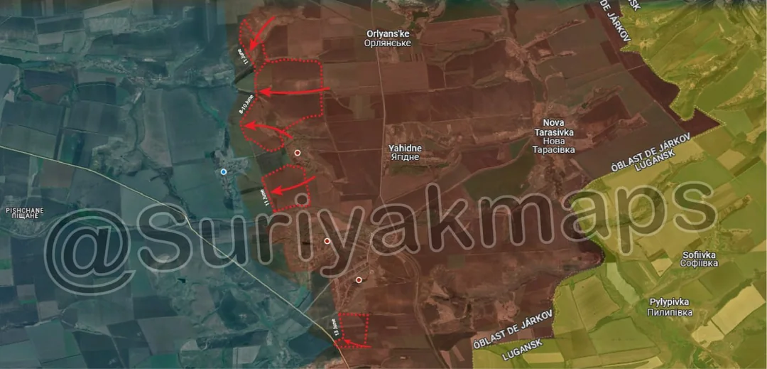 To the south, Russian forces continued advancing in the fields, capturing about half of Sokil as days of back and forth combat. The Ukrainian 47th Brigade has been trying to hold this area (from Sokil to Umanske), but has lost a number of vehicles here and has been unable to push Russia back.