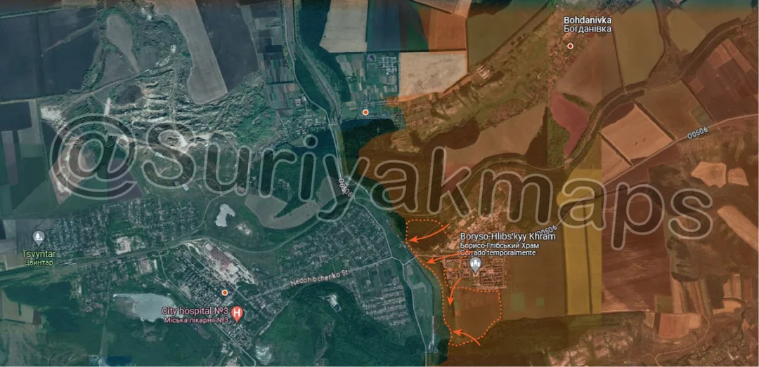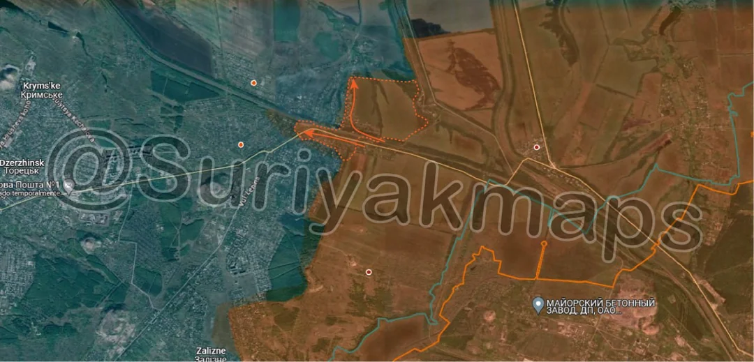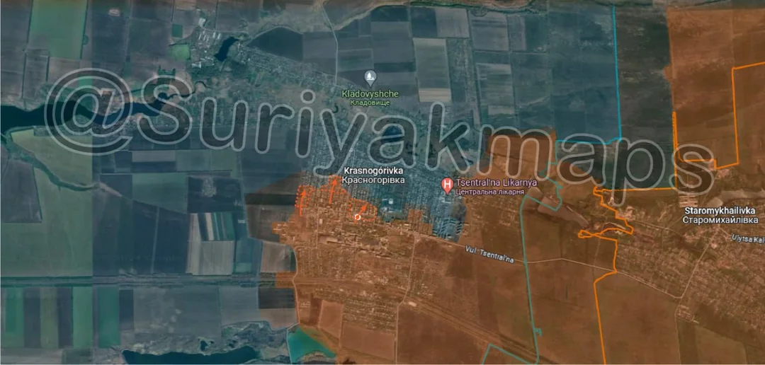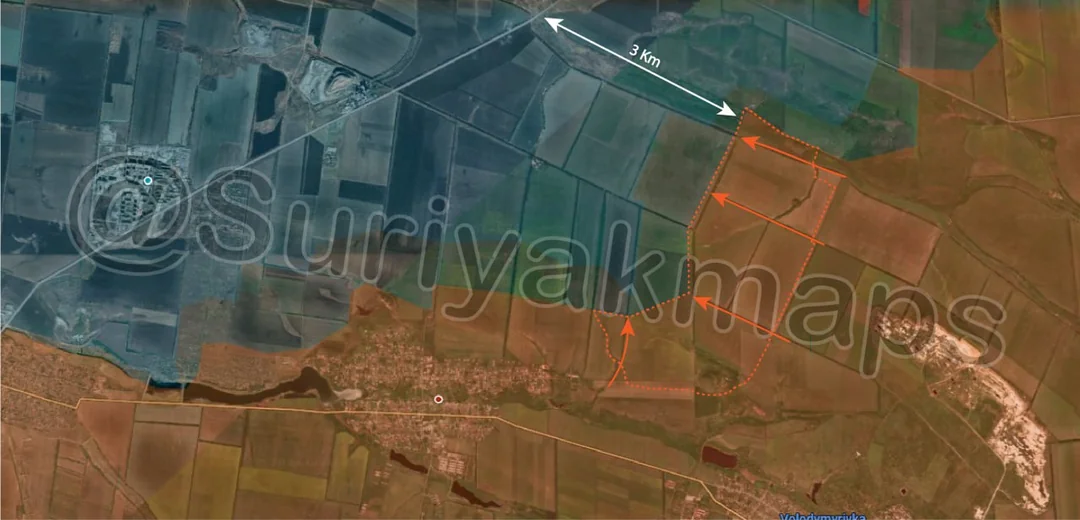 Whilst Suriyak highlights that Russian forces are now about 3km away from the main road (specifically 3.32km), Russian forces are actually closer to cutting this road around Kostyantynivka (northeast), at about 1.53km away.