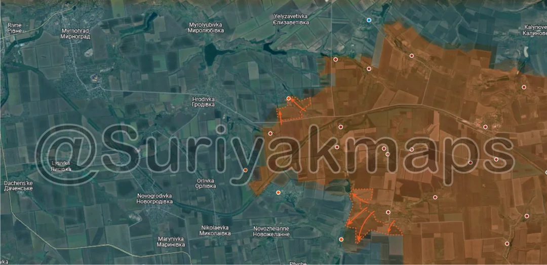 Just to the east of this, Russian forces also continued their push on the eastern side of the town, capturing more fields and trenches. The Ukrainian 47th Mech Brigade is in a dire state, having lost 3 Bradleys in this area on this day alone, and still failing to halt the Russian advance (Bradley 1, Bradley 2, Bradley 3).