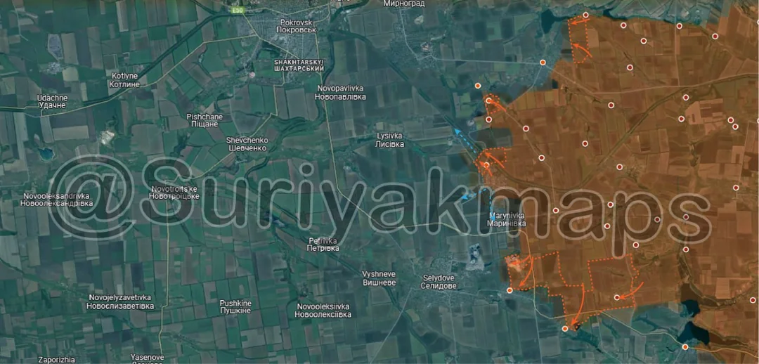 In Novohrodivka Russian assault groups have made further progress, capturing a large chunk of the northern side of the town and the field on the other side of the railway. Ukraine is reportedly withdrawing its remaining forces from the town, as it had become clear they simply cannot hold against Russian troops, and staying would be a pointless endeavour. Russia will likely capture the remainder of Novohrodivka, and possibly Marynivka, within the next day.